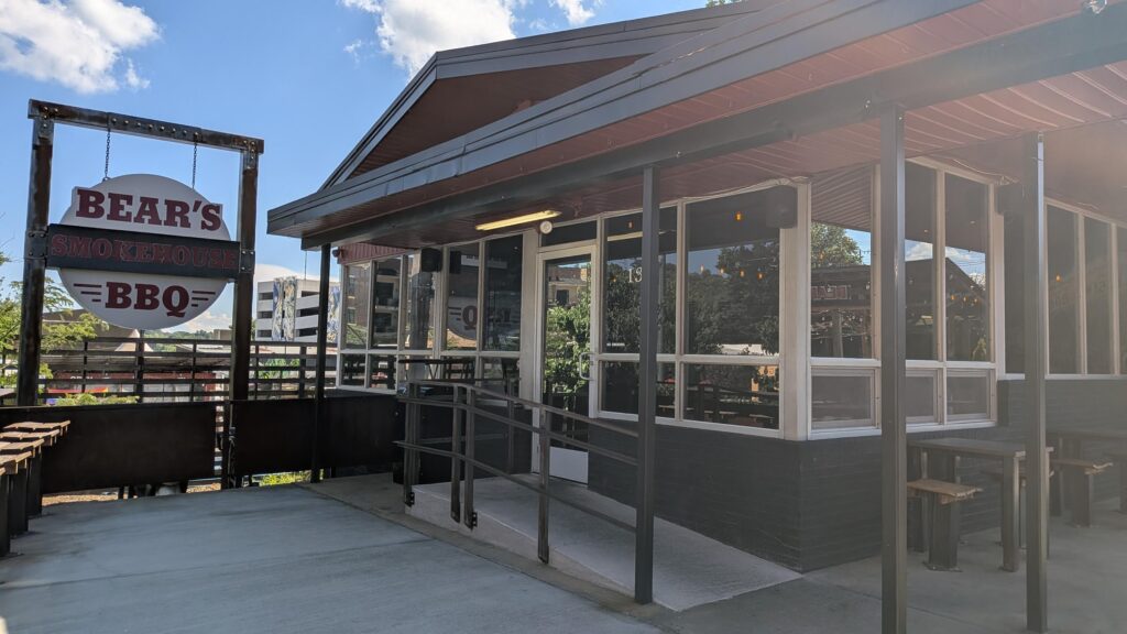 Located in the heart of a vibrant district known for its eclectic mix of art and culture, Bear’s Smokehouse BBQ at 135 Coxe Avenue is a must-visit spot for barbecue enthusiasts. The venue stands out with its welcoming facade, hinting at the warmth and smoky aromas awaiting inside. Upon entering, visitors are greeted by a rustic yet modern interior that perfectly blends the traditional feel of a southern barbecue joint with contemporary design elements. Wooden tables and industrial-style lighting create a cozy atmosphere that encourages guests to settle in and savor the experience.