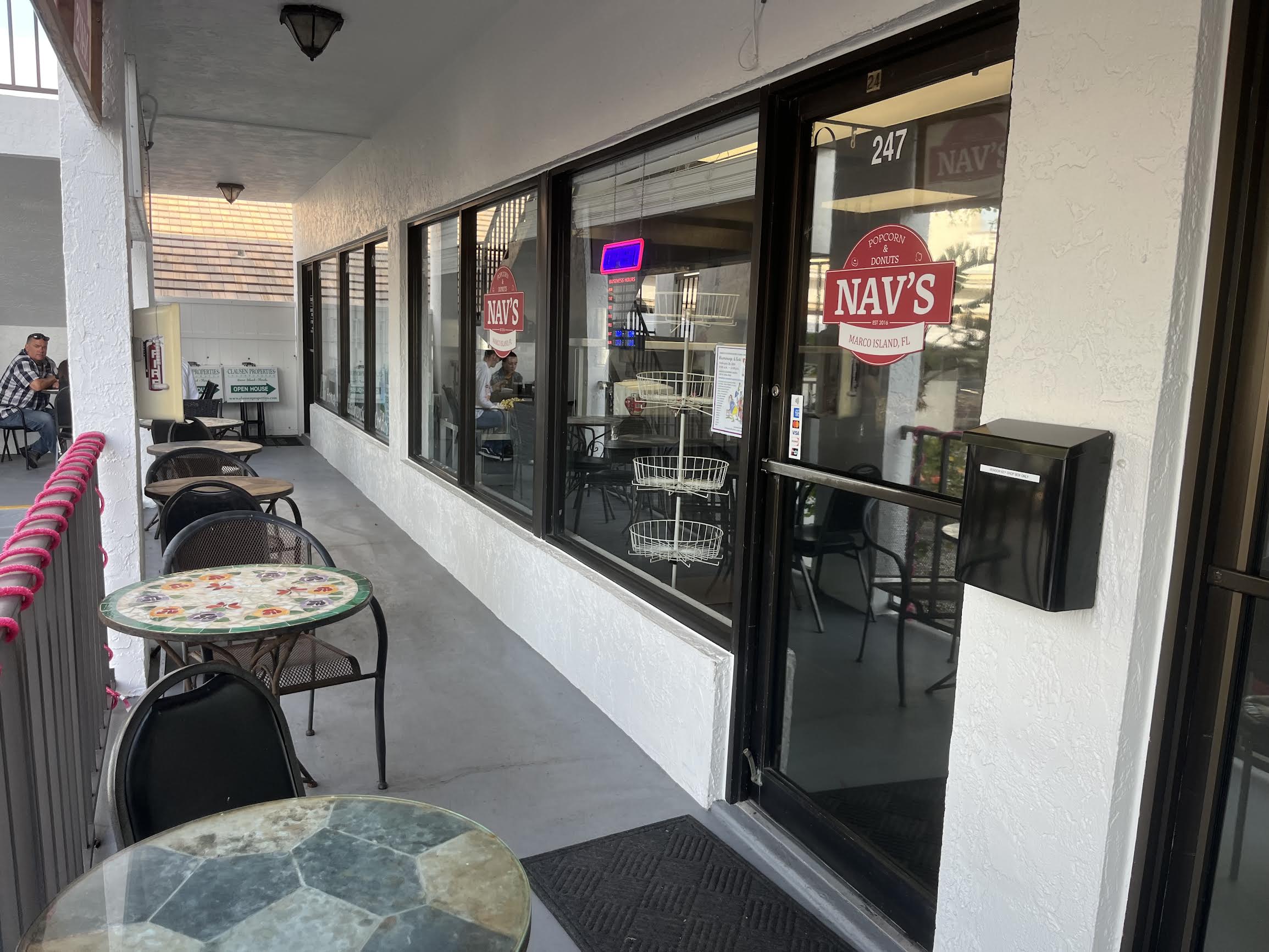 Nestled in a vibrant retail plaza on North Collier Boulevard, Nav’s Popcorn and Donuts is a delightful culinary gem that draws visitors with its unique blend of sweet and savory treats. Stepping inside, guests are greeted by the warm aroma of fresh popcorn and sugary confections, creating an inviting atmosphere that’s hard to resist. The interior is charmingly decorated with bright, playful colors and quirky donut-themed art, embodying the fun and lighthearted spirit of the establishment. The shop’s layout encourages exploration, with a welcoming counter displaying an impressive variety of popcorn flavors and artistic donuts, each one more tempting than the last.