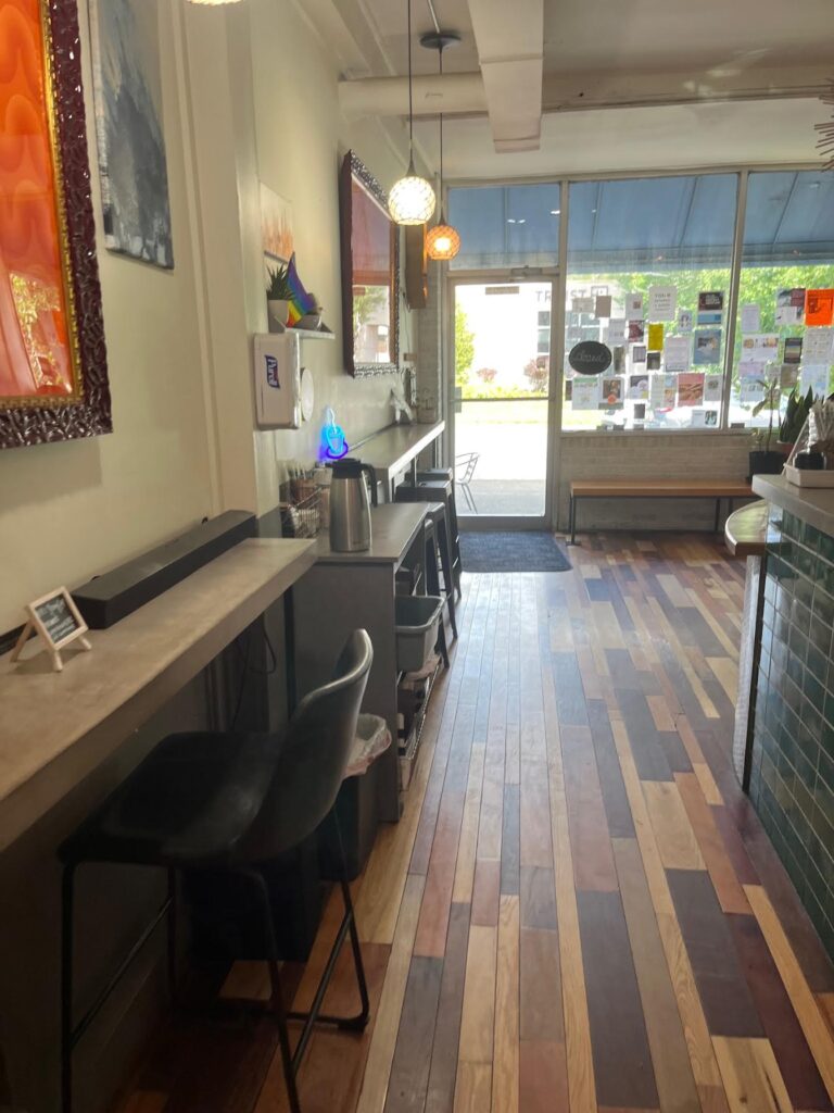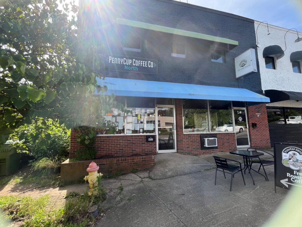 Pennycup Coffee North, situated on Merrimon Avenue, offers a delightful retreat for coffee enthusiasts and casual visitors alike. This inviting venue is a part of the beloved local chain, known for its commitment to quality and community. The shop stands out with its warm and welcoming ambiance, characterized by its rustic decor fused with modern touches. Exposed brick walls, tasteful art pieces, and comfortable seating arrangements create a cozy atmosphere that beckons patrons to relax and stay awhile. The soft hum of conversations and the rich aroma of freshly brewed coffee envelop the space, making it an ideal spot for both solitary reflection and spirited discussions.
