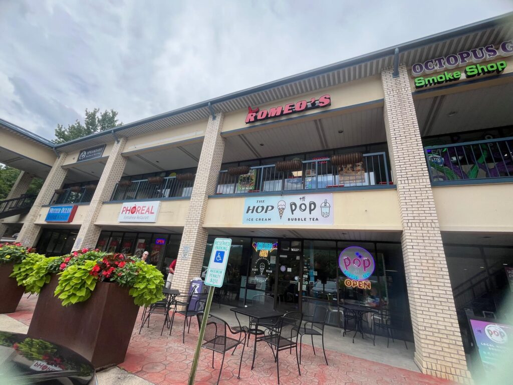 Pop Bubble Tea Café adds an equally fun and flavorful twist, serving a variety of bubble tea drinks, from traditional milk teas to fruit-forward creations with tapioca pearls or popping boba. The vibrant colors and customizable options make every visit feel like a treat tailored to your taste. The shared space is open and inviting, with comfortable seating, bright decor, and a laid-back vibe that encourages lingering over your drink or dessert. Whether you’re stopping in for a cone, a cup of bubble tea, or both, this dual destination offers a playful and satisfying pause in the heart of Merrimon Avenue.